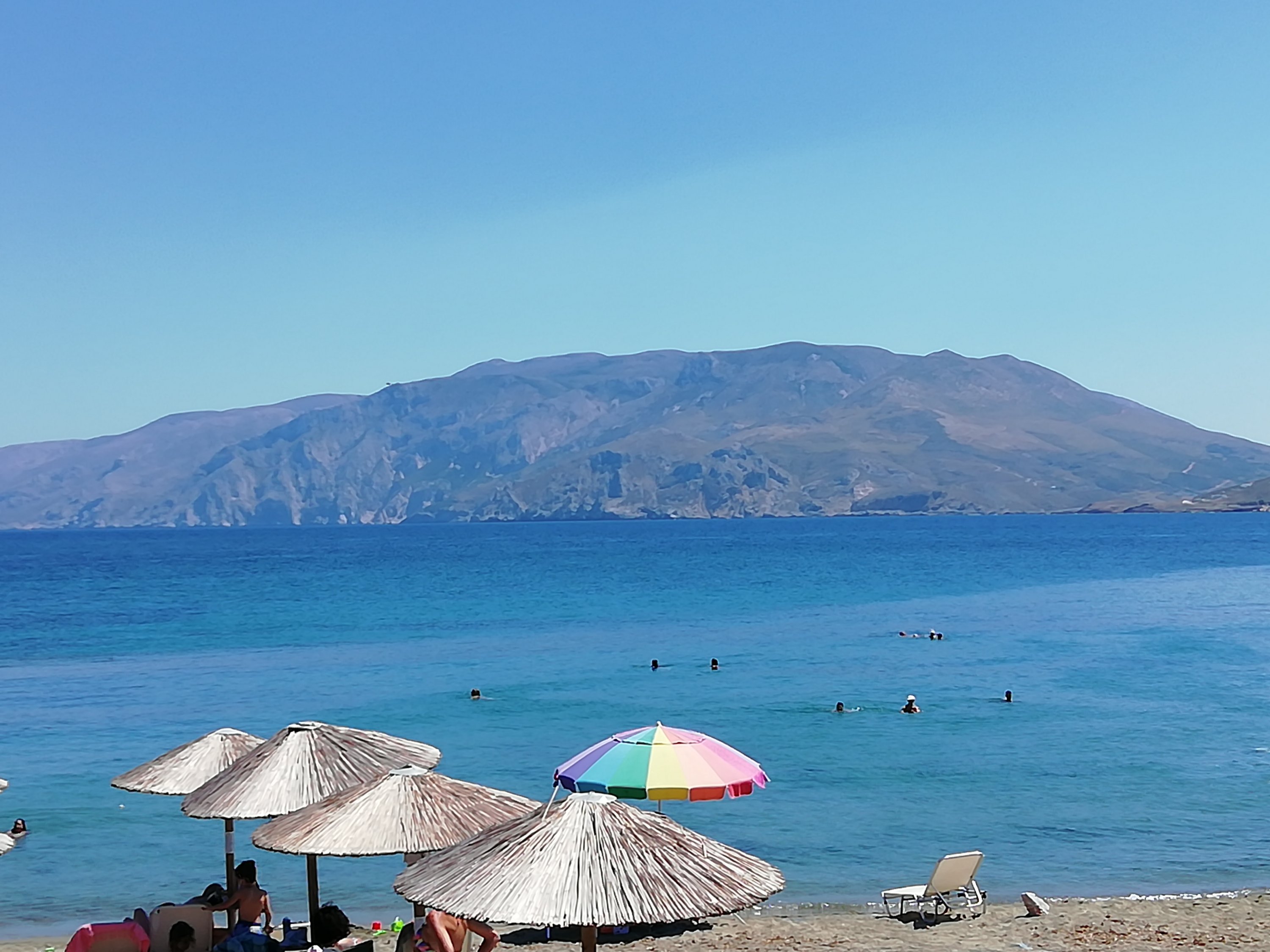 Una de las mejores vistas del pueblo de Esciros (en la cima hay una fortaleza con un monasterio dentro) es la que tiene desde la playa principal, Μώλος. Un poco más a la izquierda está este imponente macizo, el Κόχυλας, con matices azulados y anaranjados.
